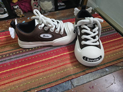 These shoes are such a work of art really!! Before i ordered them i pondered a while thinking they might be too cutsie for my street style, but oh no, they just so perfect for all kinds of styles and outfits it's insane. Can't wait for this brand to blow up.. but not before I buy at least 2 more pairs. (owning 2 pairs of smile shoes currently 🫣)